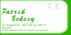 Welcome to PATRIK BEKESY name analyzer. Attention - this page is analising the Patrik Bekesy name, not the person named PATRIK BEKESY!